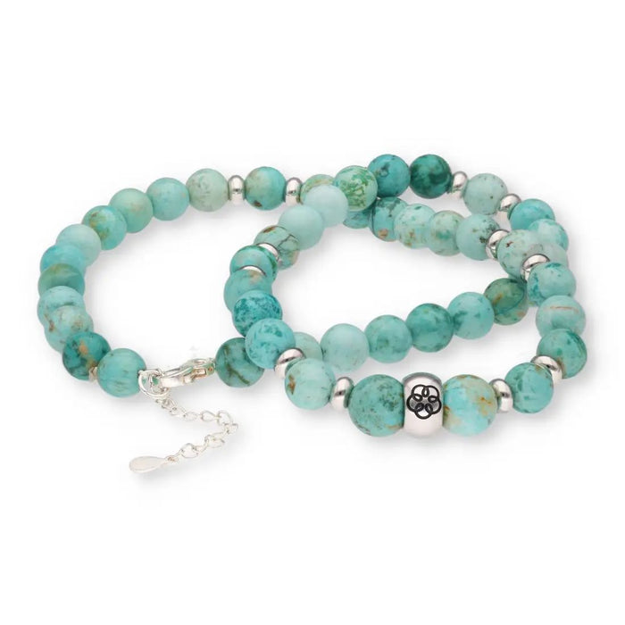 Wie ein Geschenk aus den Tiefen der Erde erstrahlt der seltene Türkis, ein kostbares Kupfer-Aluminium-Phosphat, das seit jeher als Symbol für Schutz, Wahrheit und Lebenskraft gilt. In unserer Beschützerkollektion entfaltet er seine besondere Magie am Halschakra (unterhalb des Kehlkopfes) und stärkt sanft auch das Herzchakra (im Zentrum der Brust). Türkis erweckt die eigene Stimme, schenkt Selbstbewusstsein und verleiht den Mut, die eigene Wahrheit klar und liebevoll auszusprechen.