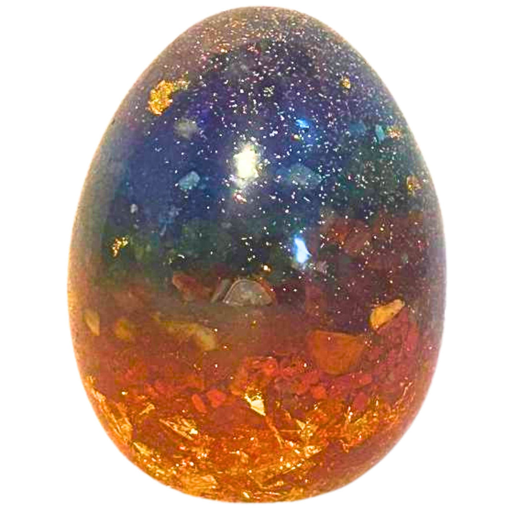Orgonit in Eiform mit Chakra-Farbgestaltung