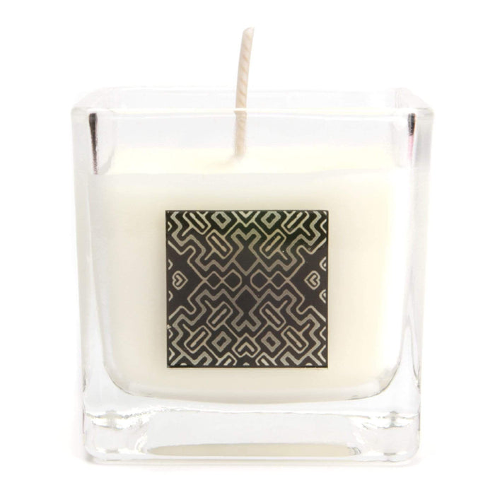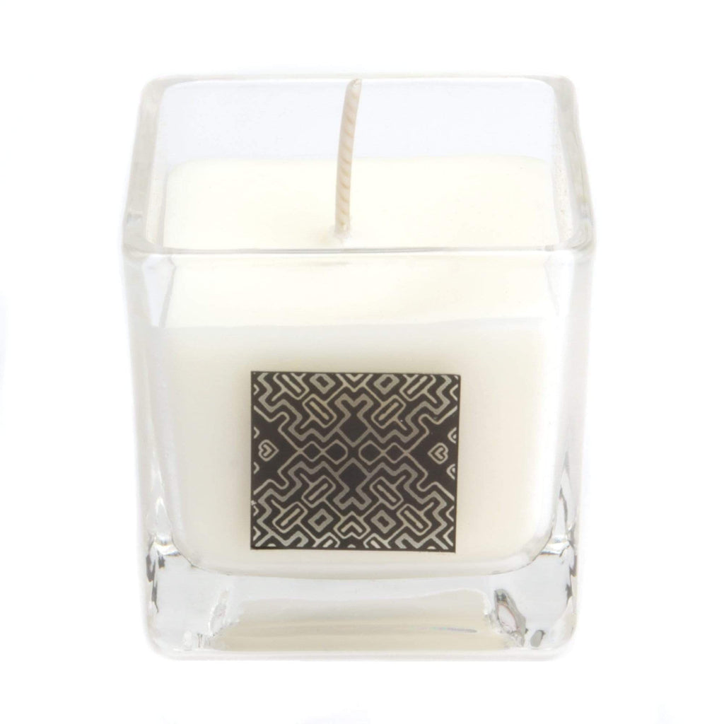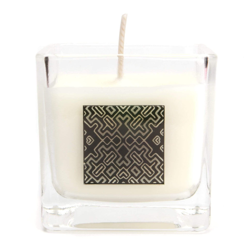 Die Duftkerze Palo Santo wird in einem klaren, quadratischen Glas geliefert, das über einen dekorativen Musterdruck in Schwarz, Weiß und Grau verfügt. Die hochwertige weiße Kerze wird aus nachhaltigem Rapswachs gefertigt – ohne Mineralöle. Sie bietet den balsamischen Duft des heiligen Holzes „Palo Santo“, das traditionell für Schutzrituale zum Einsatz kommt.