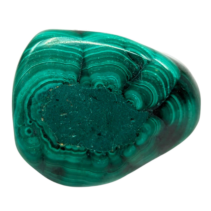 In der Steinheilkunde steht der Malachit für mehr Lebensfreude und Ausgeglichenheit. Man sagt, er verbessert die Konzentrationsfähigkeit und beflügelt die Fantasie. Der Trommelstein aus Malachit hat die perfekte Größe, um ihn entweder dekorativ im Raum zu platzieren oder ihn als spirituellen Begleiter mitzuführen.
