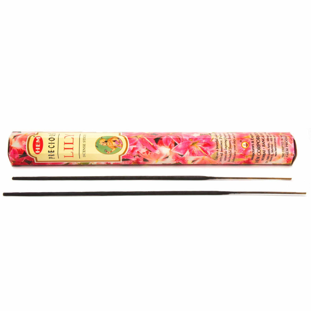 Die handgefertigten HEM Räucherstäbchen Kostbare Lilie entfalten einen vollen Blumenduft, der mit feinen harzigen Noten begeistert. Die Lilie steht traditionell für Hoffnung und Zuneigung, ist Sinnbild der Reinheit und soll Licht ins Gemüt zaubern. Die Räucherstäbchen eignen sich hervorragend für Rituale und Zeremonien rund um die Themen Weiblichkeit, Fruchtbarkeit und Liebe.