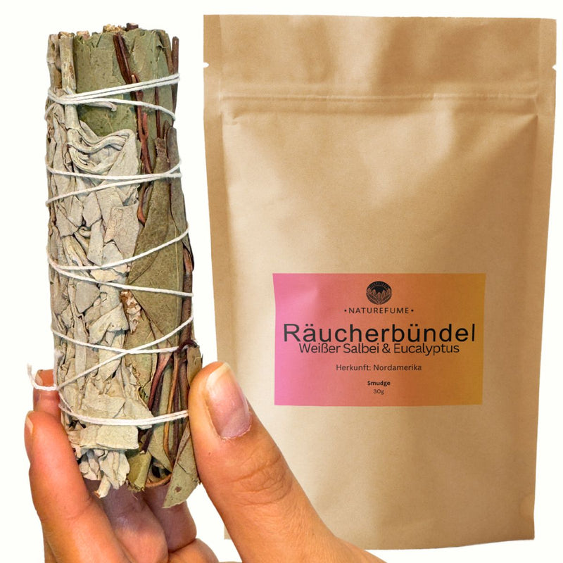 Mit unserem Weißer Salbei & Eukalyptus Räucherbündel erlebst Du eine tiefgreifende spirituelle Reinigung und erfrischende Belebung, die Deinen Raum und Deinen Geist mit positiver Energie und Klarheit erfüllt.