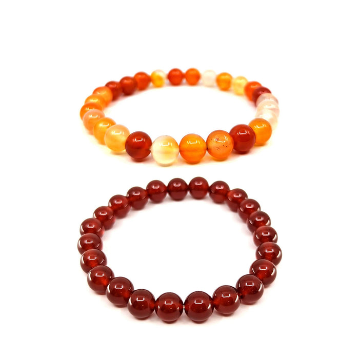 Diese kraftvollen Karneol-Armbänder begeistern mit intensiven Farbverläufen von leuchtendem Orange bis tiefem Rot. Die ca. 8 mm großen Edelstein-Perlen sind auf elastischen Stretchbändern aufgezogen und bieten dadurch einen angenehmen und flexiblen Tragekomfort – einfaches An- und Ausziehen garantiert. Ideal zur Unterstützung des Wurzel- und Sakralchakras.