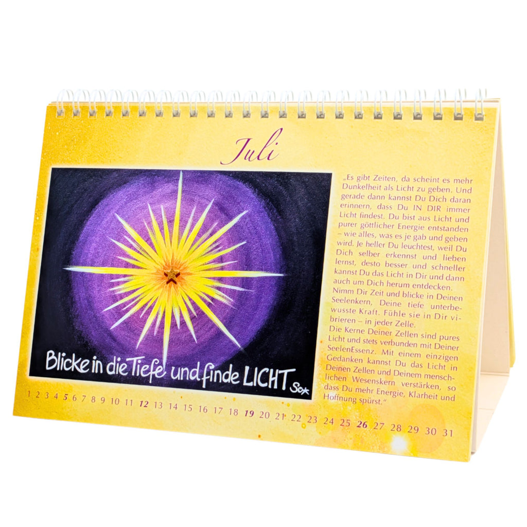 Entdecke den besonderen Tischkalender "Die JahresEnergie für 2026" mit Kunstwerken von Sonja Ariel von Staden – ein liebevoll gestalteter Begleiter durch das ganze Jahr. Seit über 20 Jahren veröffentlicht Sonja Ariel von Staden ausgewählte Motive ihrer spirituellen Kunst als Kalender und berührt damit Menschen auf der ganzen Welt.