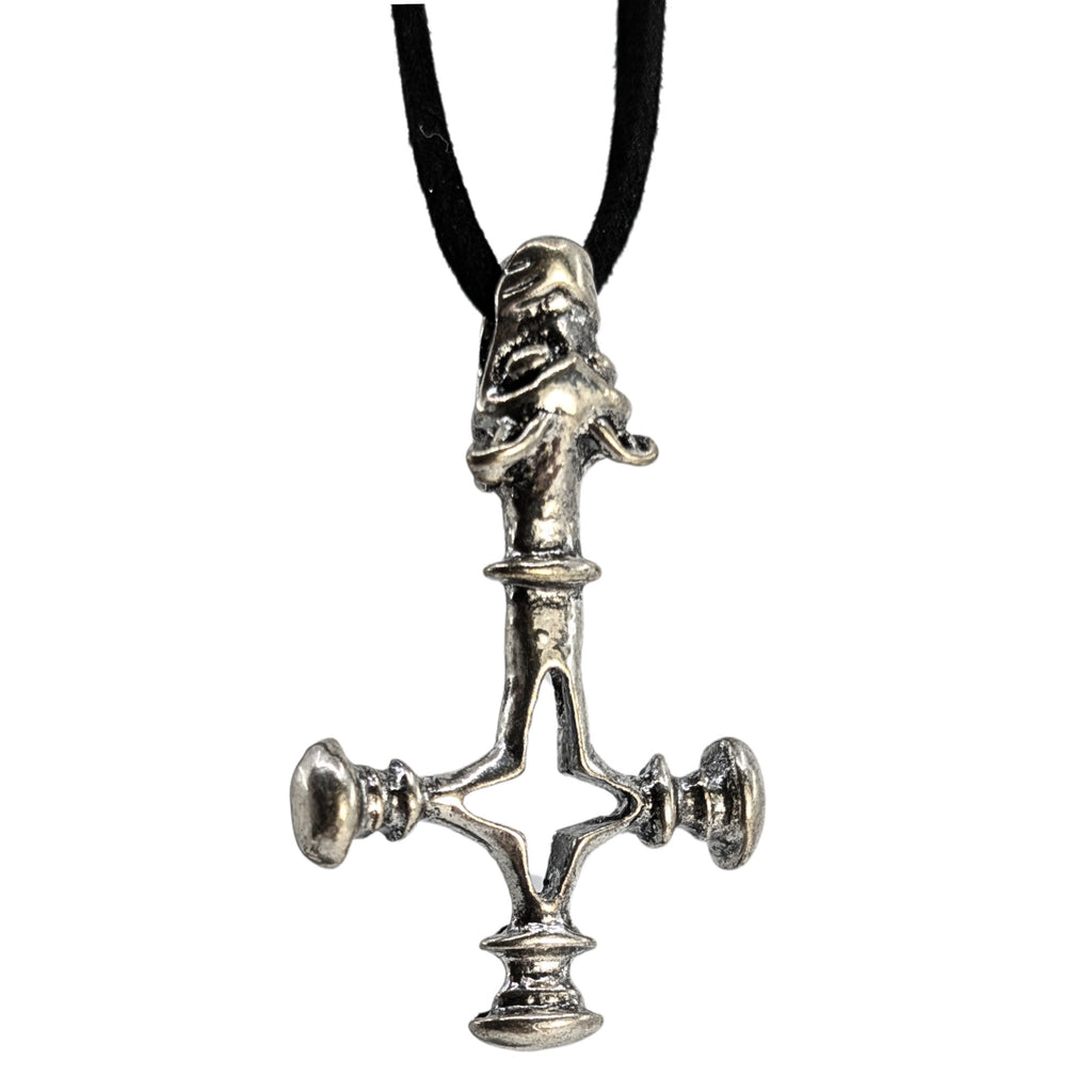 Dieses magische Amulett ist die originalgetreue Nachbildung eines in Island gefundenen Thorshammers, der häufig als Wolfskreuz-Thorshammer bezeichnet wird. Der Originalfund stammt aus dem 10. Jhr. n. Christus. In diesem speziellen Thorshammer erkennt man bereits die Einflüsse des christlichen Glaubens, der zum damaligen Zeitpunkt in Europa Anhänger fand. In diesem Thorshammer vereinen sich heidnische, germanische und christliche Symbole, Thorshammer und Kreuz. Der Wolf ist das Tier Odins, deshalb erhält der Träger dieses Amuletts auch göttliche Führung durch Odin.